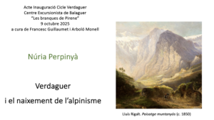 BALAGUER, LLEIDA. 9 octubre 2025. “Verdaguer i el naixement de l’alpinisme”. Acte Inauguració Cicle “Les branques de Pirene” a cura de Francesc Guillaumet i Arboló Monell. Centre Excursionista de Balaguer